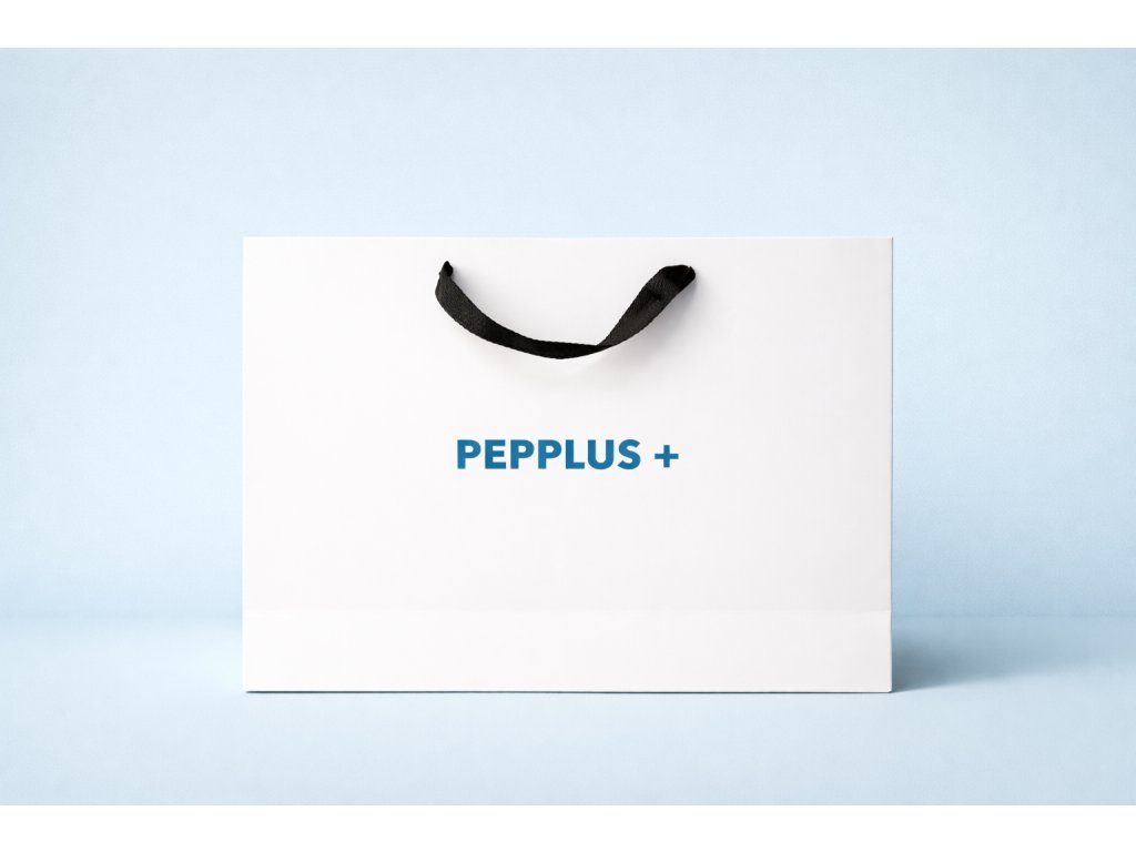 Biela darčeková taška Pepplus+ pôsobí čisto, elegantne a nadčasovo. Minimalistický dizajn v kombinácii s logom vytvára luxusný vzhľad vhodný pre každú príležitosť.